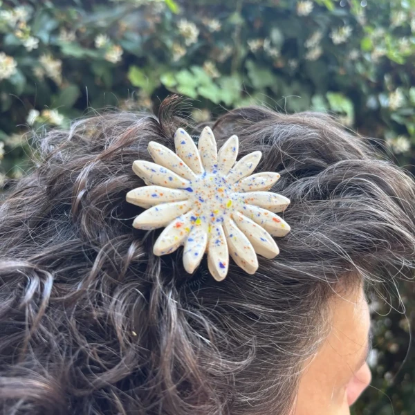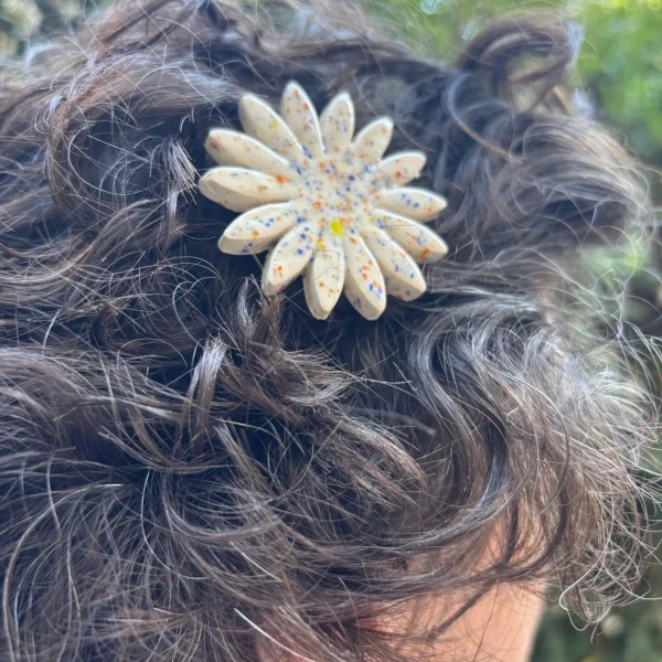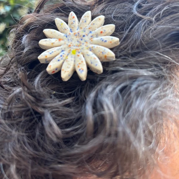 Confetti Daisy Ceramic Hair Clip – Handmade Speckled Clay Flower Hairpin, Colorful Nature Inspired Gift, Whimsical Boho Hair Accessory