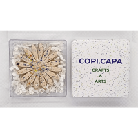 Your hair pin arrives gift-ready in a premium 8x8x3cm transparent plexiglass box. It includes a protective paper insert and a branded sticker beneath the box. Four small transparent stickers in brand colors secure the lid for a professional and stylish presentation.
