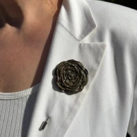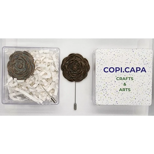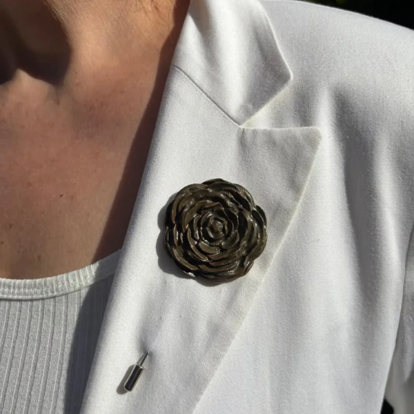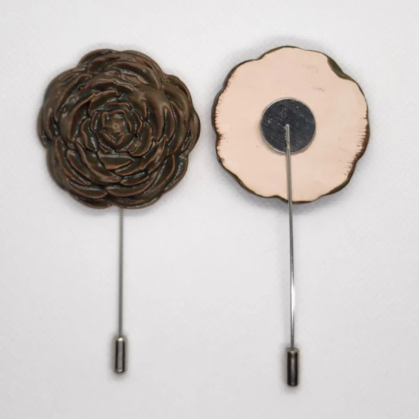 Pacific Brown Rose Brooch for Women – Sculptural Floral Lapel Pin, Earthy Bronze Statement Jewelry for Blazers, Coats or Gift Giving