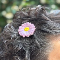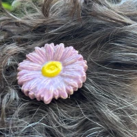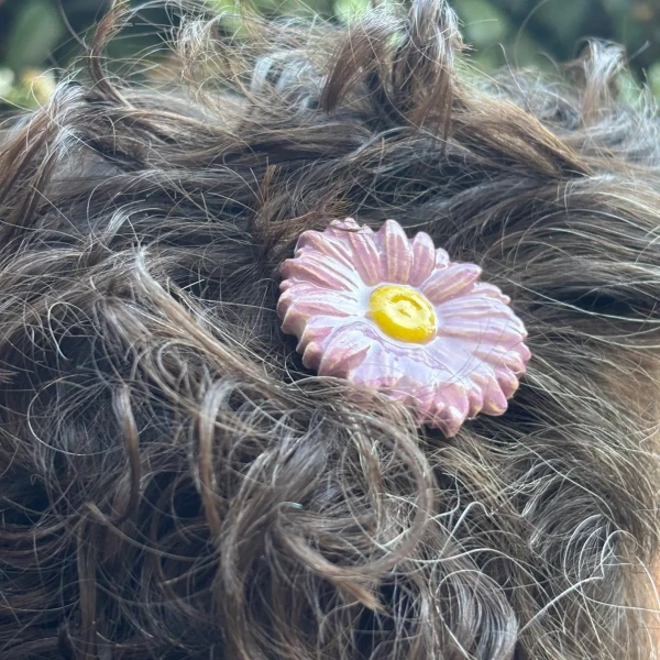 Pink Flower Hair Clip – Romantic Handmade Hair Accessory with Yellow Center, Soft Feminine Barrette for Women, Bridesmaids or Gifts