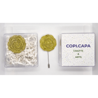 Your brooch comes in a clear plexiglass box (8x8x3 cm) with a protective paper insert and branded sticker at the bottom. The lid is secured with 4 mini transparent stickers in our brand colors for added charm and security.