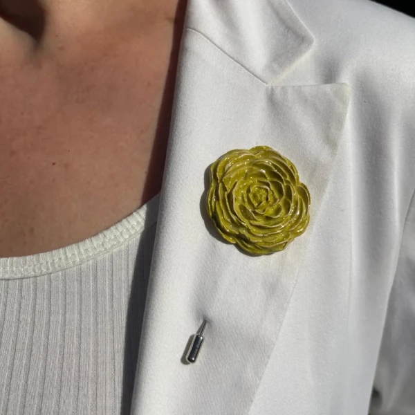 Discover the elegance of our handcrafted Ceramic Rose Brooch, a unique wearable artwork made from high-quality ceramic clay. Each piece is carefully shaped, painted, and kiln-fired by our skilled artisans in our dual-location workshops, ensuring every brooch has its own character.